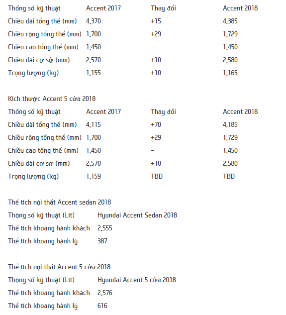 Kích thước Accent sedan 2018