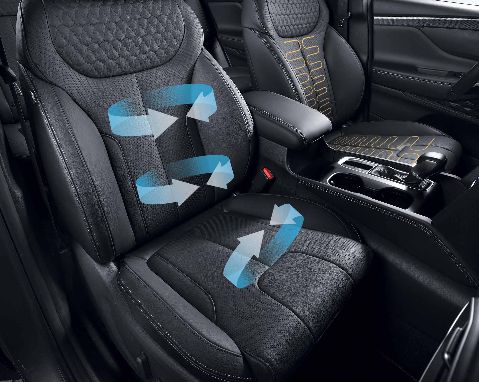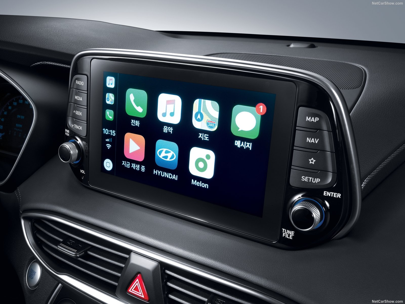 Phía trong xe nay mang đậm phong cách thể thao thay vì kiểu lịch lãm ở thế hệ cũ. Bảng tablo có nhiều đường nét gấp khúc, vô-lăng ba chấu cứng cáp hơn đi cùng một bảng đồng hồ kỹ thuật số hiện đại, đẹp mắt. Hyundai còn trang bị cho Sant Fe 2019 nhiều công nghệ cao cấp, màn hình hiển thị HUD, hệ thống thông tin giải trí tiên tiến với điều khiển bằng giọng nói và tương thích Apple Car Play.