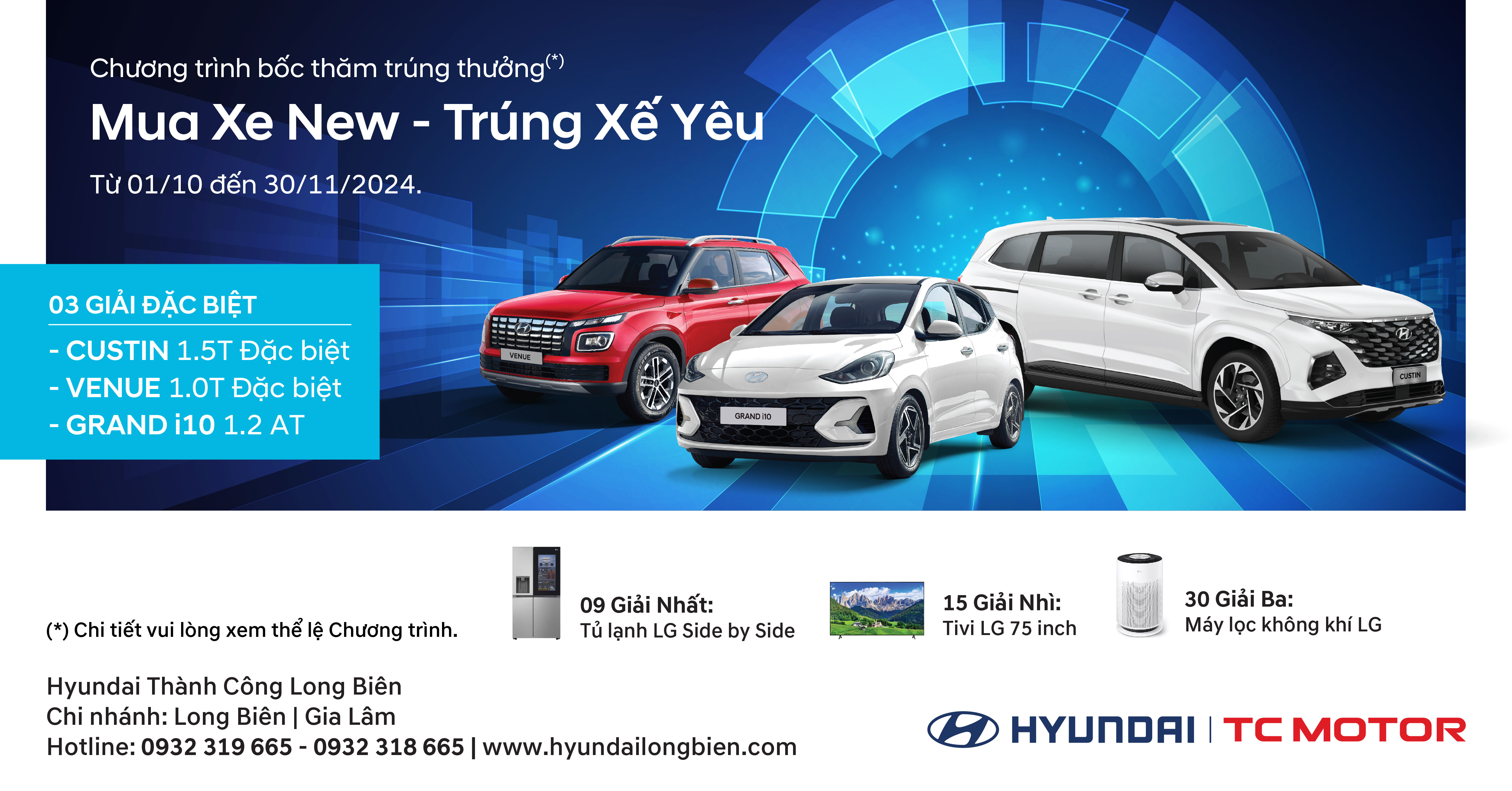 Theo đó, từ ngày 01/10 – 30/11/2024, khi mua xe tại Hyundai Long Biên & Gia Lâm, Quý khách có cơ hội tham gia bốc thăm với nhiều phần quà giá trị!