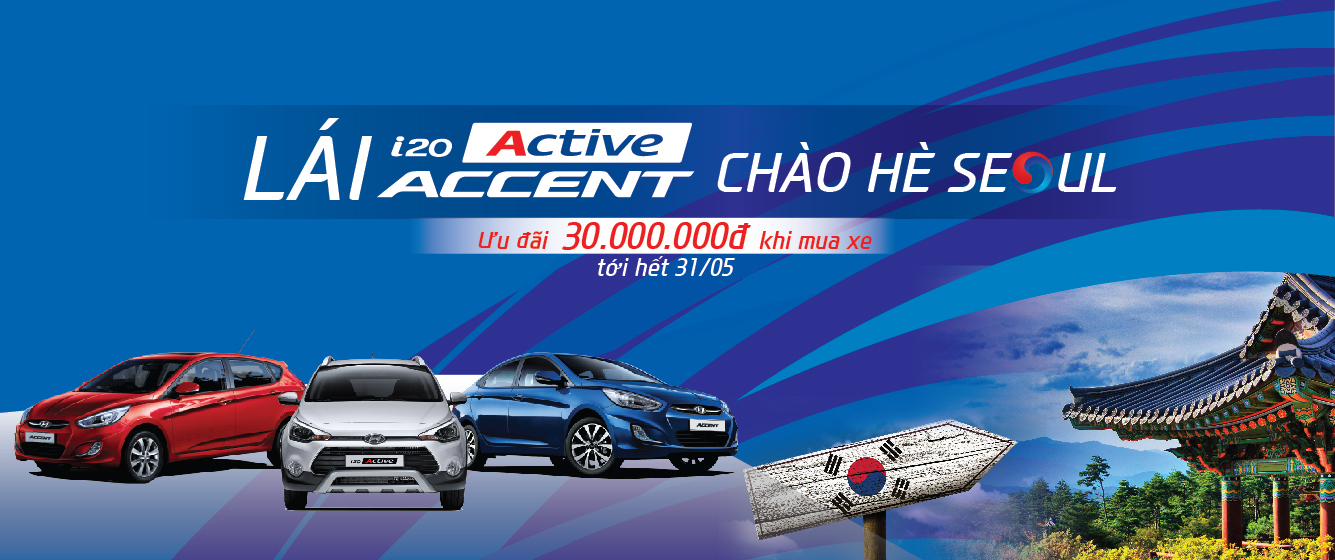 Từ ngày (01/05 - 31/05/2016), Hyundai Thành Công triển khai chương trình khuyến mại "Lái i20 Active, Accent, Chào hè Seoul" cho khách hàng khi mua sản phẩm xe của Hyundai.