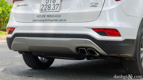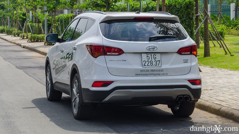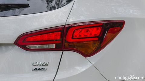 Tương tự như đàn em Tucson, SantaFe có phần đuôi đầy đặn và trông có phần bệ vệ, mang đến sự vững chãi cho tổng thể thiết kế của xe. Cặp đèn hậu LED tạo nên từ các đường uốn lượn sắc nét, kết hợp cùng dãy đèn LED báo phanh phụ bố trí ở đuôi lướt gió và hai cụm đèn phản quan đặt thấp tạo thành năm vị trí báo hiệu hết sức hiệu quả cho các phương tiện khác.