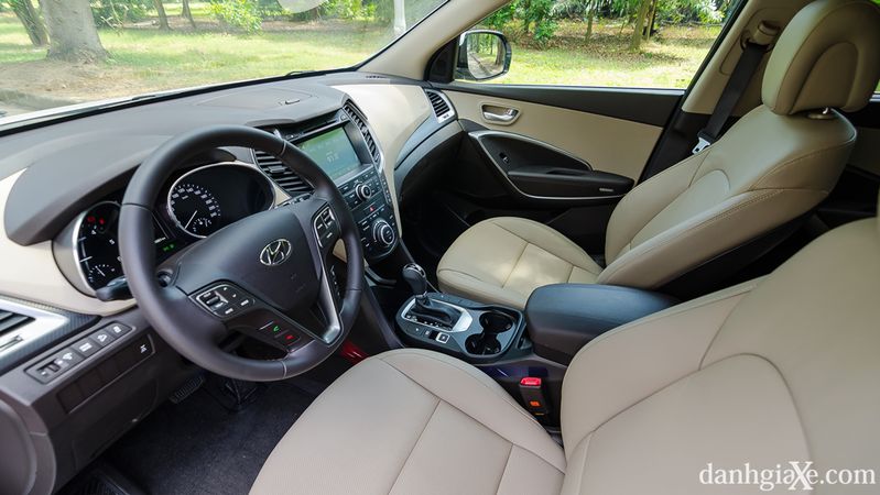 Trước hết, so với các đối thủ xây dựng từ khung gầm unibody và có cùng tầm vóc thì SantaFe ưu thế hơn ít nhiều về không gian cũng như sự chăm chút dành cho hành khách. Ngoài việc bảy vị trí ngồi đều được bọc da cao cấp ở tất cả các phiên bản thì các đệm ngồi và tựa lưng hết sức êm ái, cơ thể người ngồi được nâng đỡ tốt, khoảng duỗi chân cùng độ thoáng trần xe được phân bổ tốt cho hai hàng ghế, đảm bảo rằng mọi người đều sẽ dễ chịu dù là đi xa hay đi gần.