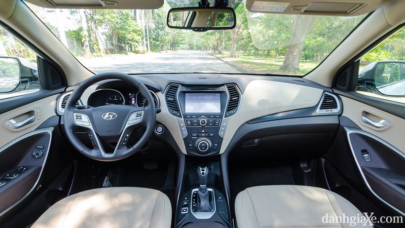 Bảng tablo của SantaFe thật sự thoáng đãng và đẹp mắt nhờ vào khi lối thiết kế đối xứng táo bạo, Hyundai mạnh dạn đan xen các mảng da màu sáng, nhựa giả cacbon tối màu hay đường viền nhũ bạc tinh tế lẫn nhau khiến cabin thêm phần sang trọng, cá tính. Và không chỉ ghi điểm về phần nhìn, SantaFe còn đầy hiệu quả với cụm điều khiển trung tâm bao gồm các nút bấm sắp xếp gọn gàng, khoa học kết hợp cùng màn hình cảm ứng, giúp thao tác sử dụng đơn giản, dễ dàng làm quen.