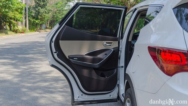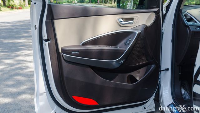 Các cửa xe ra vào của SantaFe dầy và chắc, âm đóng mở gọn gàng mang đến sự an tâm, vững tin cho người sử dụng. Tiếp đến, phần nhìn phần dùng được hoàn thiện tốt với các mảng màu đối lập xen lẫn bằng các đường viền nhũ bạc lịch lãm cùng bệ tì tay được phủ da êm ái, và hàng ghế sau còn có thêm rèm che nắng, trang bị vốn thường chỉ xuất hiện ở các dòng sedan hạng D.