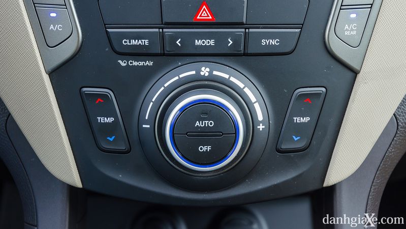 Mở đầu cho danh sách trang bị của SantaFe 2017 là hệ thống điều hòa tự động hai vùng nhiệt độ độc lập, đi cùng đó là các hốc gió xuất hiện rải rác khắp cabin để phục vụ cụ thể cho từng hàng ghế trong suốt mọi chuyến đi.