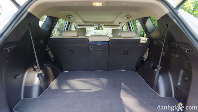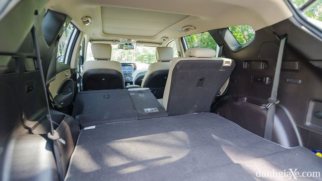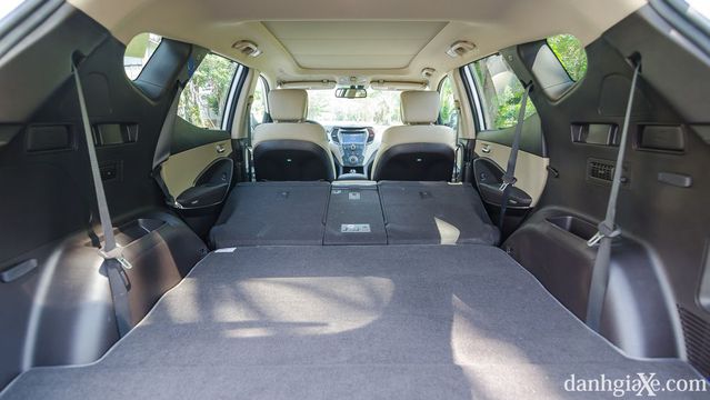 Nếu phải soi thật kĩ để tìm ra một hạn chế nào đó của SantaFe thì đó là khi cả bảy ghế ngồi được sử dụng, không gian dành cho hành lý sẽ ít đi hẳn, có chăng sẽ chỉ là hai chiếc balo du lịch cỡ vừa mà thôi. Nhưng khi gập hàng ghế thứ ba hoặc cả hàng ghế thứ hai thì đó lại là một cậu chuyện khác, nói vui thì hoàn toàn đủ rộng rãi, êm ái để hai người “thẳng chân” và đánh một giấc ngủ trưa thoải mái.
