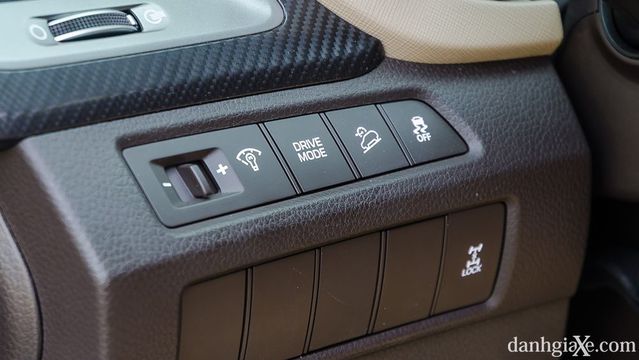 Hyundai đồng thời cung cấp cho người lái ba mức nhạy của chân ga thông qua nút Drive Mode, tùy theo cảm hứng và nhu cầu mạnh mẽ hay tiết kiệm mà bạn có thể tùy chọn Comfort – Normal – Sport để tăng dần độ bốc cho SantaFe. Đổi lại cột chữ A lại khá choáng tầm nhìn nên người lái cần phải chú ý, cẩn thận khi tiến vào các giao lộ nhiều xe máy.