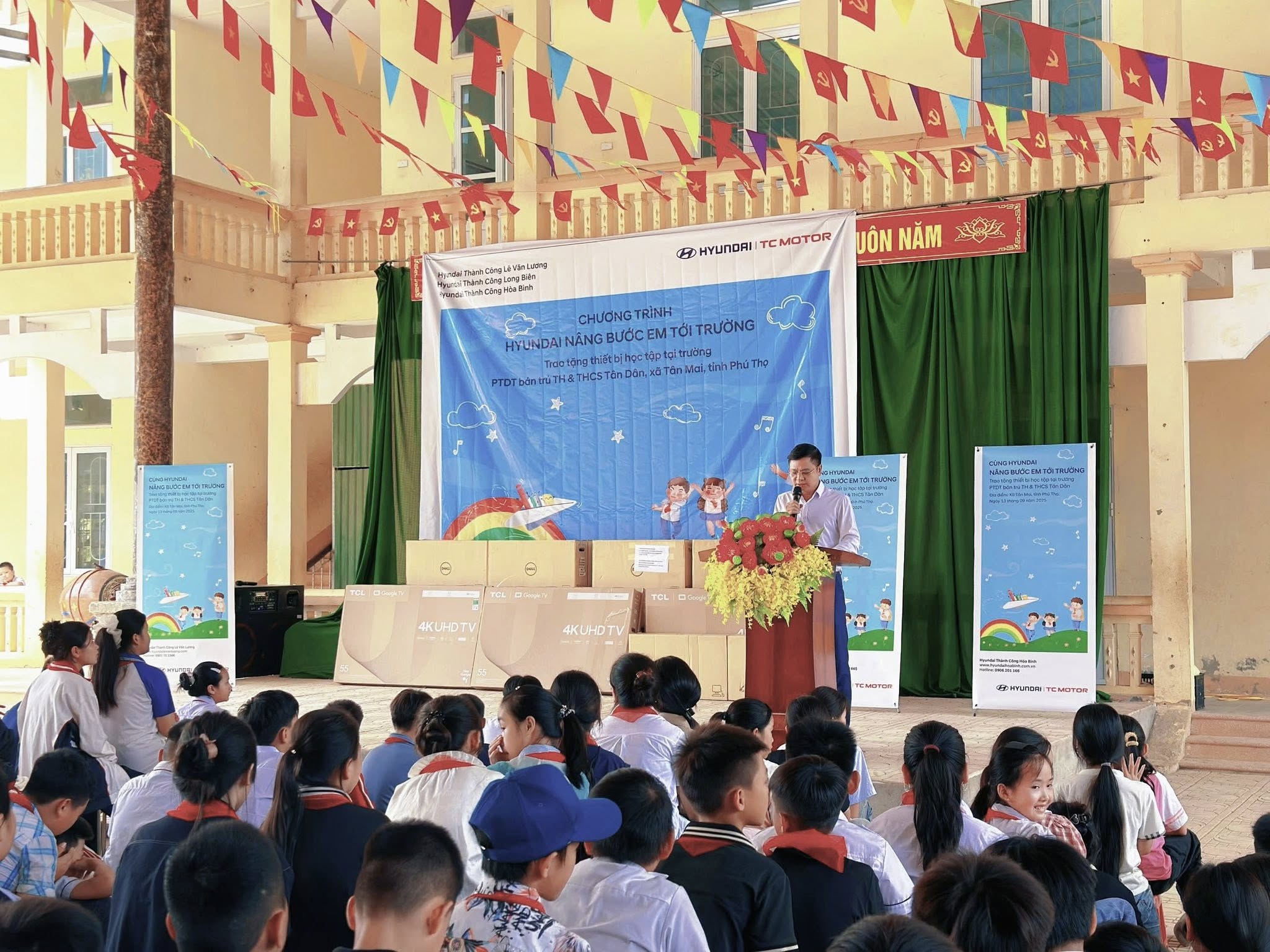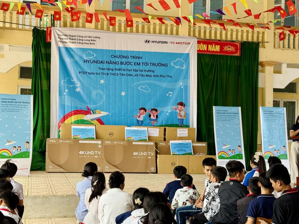 - Ngày 12/09/2025. Hyundai Long Biên cùng Hyundai Lê Văn Lương & Hyundai Hòa Bình đã đến thăm và trao tặng những thiết bị học tập thiết yếu cho các em học sinh tại Trường PTDT Bán trú TH & THCS Tân Dân, xã Tân Mai, tỉnh Phú Thọ