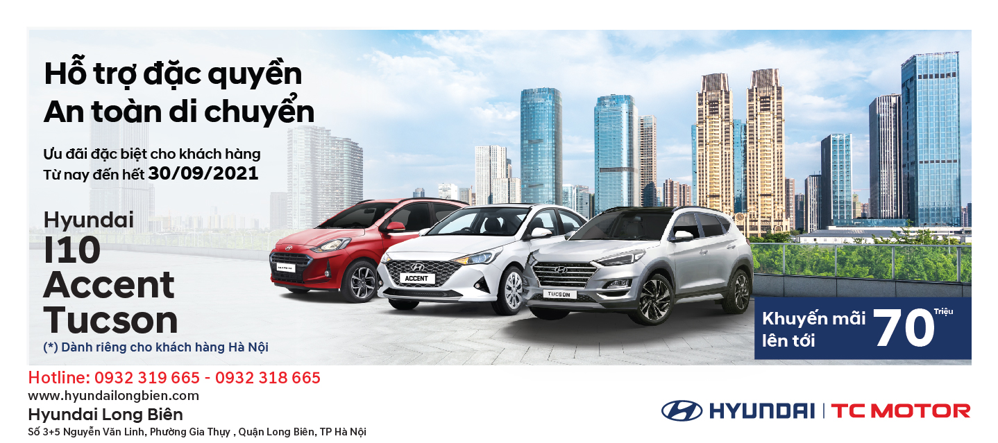 Giữa tình hình dịch bệnh tiếp tục diễn biến phức tạp, với mục tiêu hỗ trợ và đồng hành cùng người tiêu dùng cả nước kịp thời sở hữu chiếc xe phù hợp, bảo vệ sức khỏe gia đình, Hyundai Long Biên triển khai chương trình “Hỗ trợ đặc quyền - An toàn di chuyển” ưu đãi cho khách hàng đến hết ngày 30/09/2021. Theo đó, Quý khách hàng sẽ được nhận ưu đãi giảm giá xe lên tới 70 triệu đồng tùy từng mẫu xe và các phiên bản, áp dụng với khách hàng tại Hà Nội.