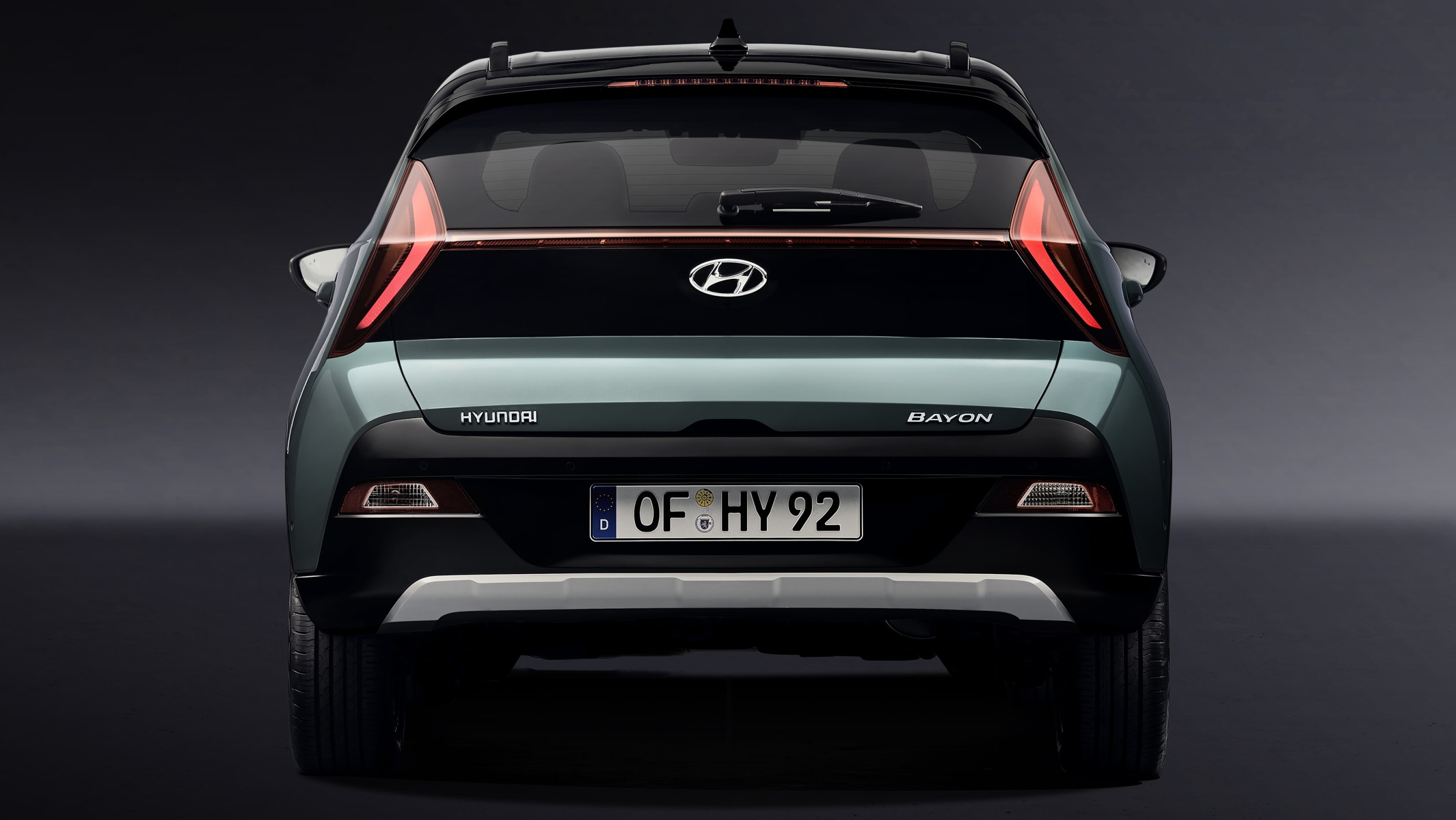 Bayon ngắn hơn Kona (4.205mm) và dài hơn i20 (4.040 mm). Về phong cách, Hyundai đã sử dụng một vài chi tiết thiết kế của Kona; rõ nhất là dải đèn LED chiếu sáng ban ngày siêu mảnh tạo sự tách biệt giữa nắp ca-pô với cản sốc bên dưới, trong khi tạo hình mũi tên của cụm đèn pha được nhắc lại ở đèn hậu.