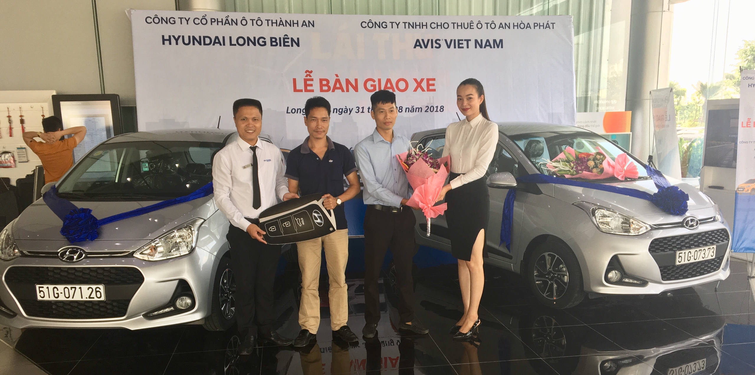 HYUNDAI LONG BIÊN - Đại lý ủy quyền của Hyundai Thành Công Việt Nam đã tổ chức buổi lễ bàn giao số lượng 7 xe Hyundai Grand i10 cho Công ty TNHH cho thuê Ô tô An Hòa Phát - AVIS VIỆT NAM.