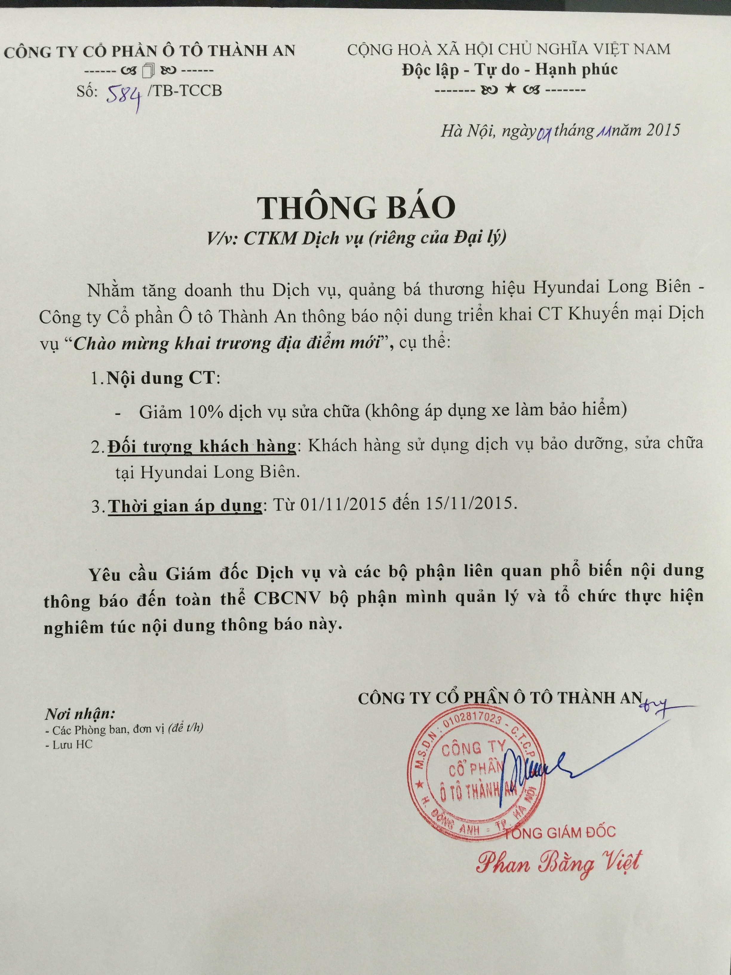 - Áp dụng cho các khách hàng sử dụng dịch vụ bảo dưỡng, sửa chữa tại Hyundai Long Biên.