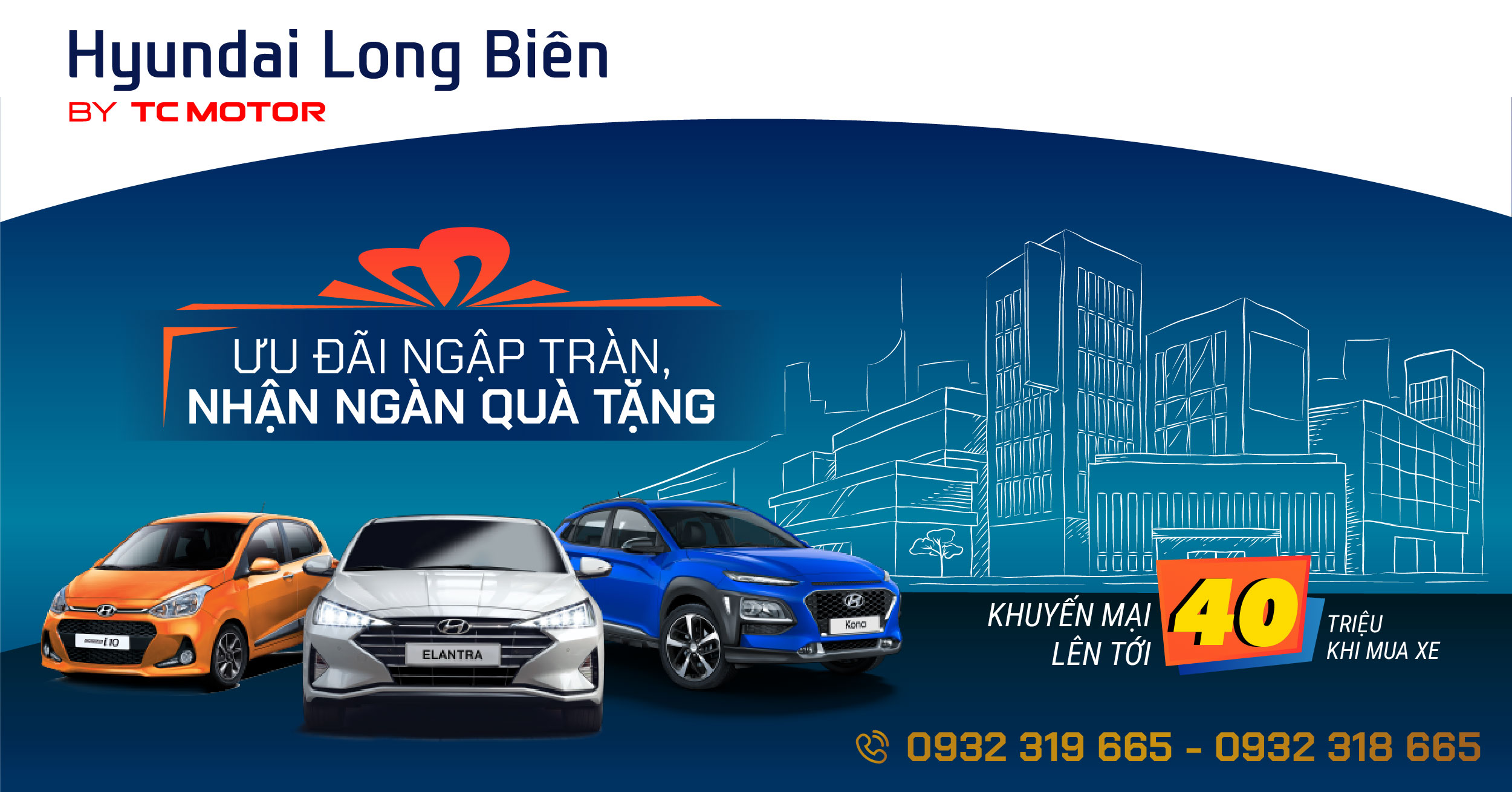Nhằm hỗ trợ người tiêu dùng có được chiếc xe phù hợp với ngân sách cá nhân, từ ngày 01/03/2020 cho đến hết ngày 31/03/2020, Hyundai Long Biên by TC MOTOR thực hiện chương trình khuyến mại đặc biệt cho các khách hàng chọn mua sản phẩm Hyundai Grand i10, KONA, Elantra và Solati với mức ưu đãi lên đến 40 triệu đồng.