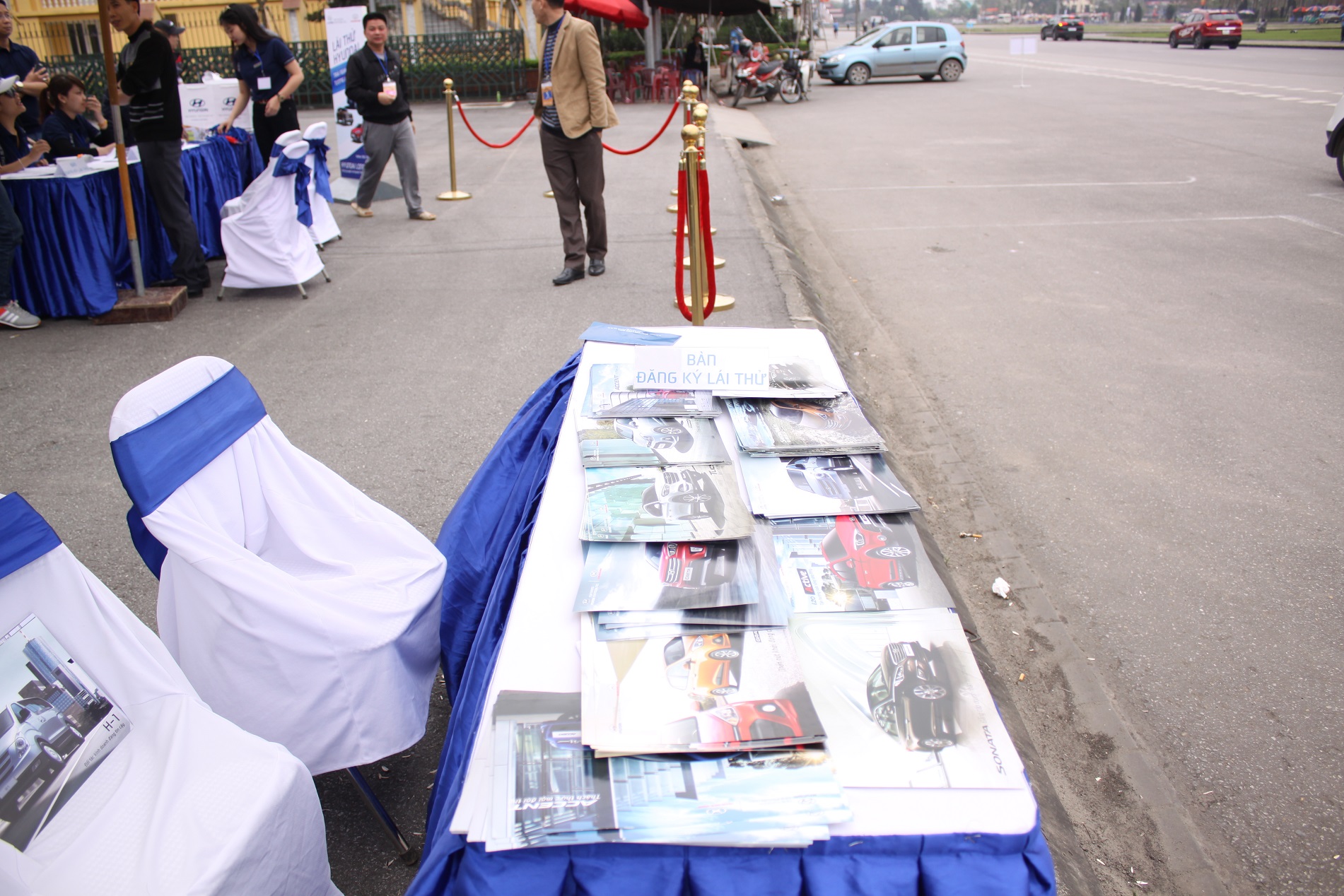 Trong thời gian đợi, khách hàng thường đứng trực tiếp lại bàn đăng ký để cùng nhau trò chuyện, thảo luận về các dòng xe của Hyundai ...