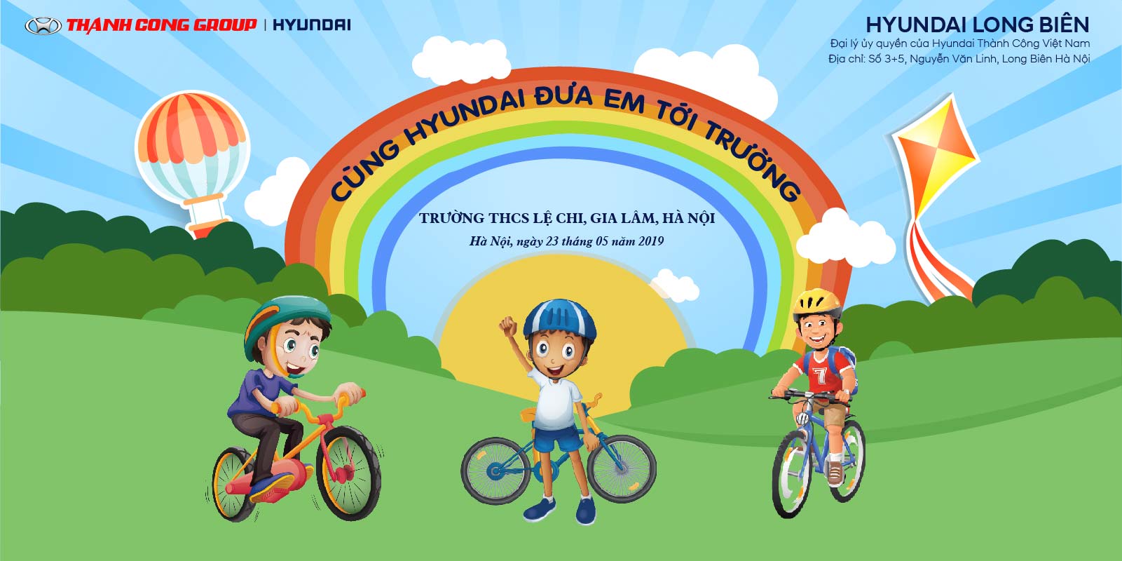 "Cùng Hyundai đưa em tới trường" là chương trình được Hyundai Long Biên - đại lý ủy quyền của Hyundai Thành Công Việt Nam mang đến cho các em học sinh thuộc diện hộ nghèo hiếu học tại trường THCS Lệ Chi, Gia Lâm, Hà Nội