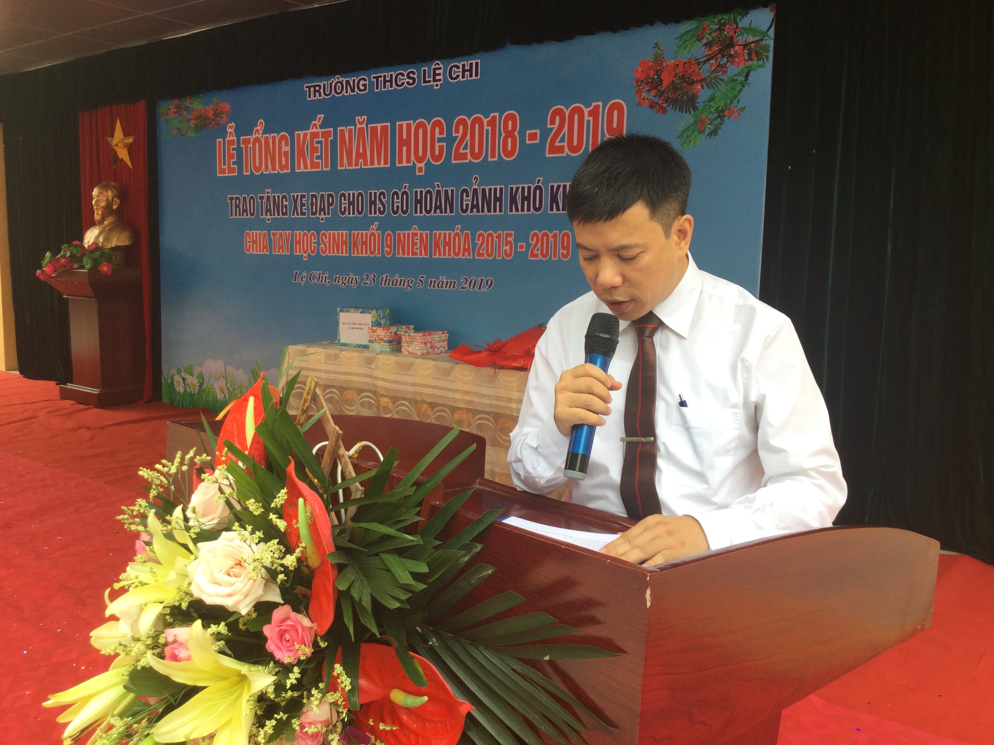 Thầy Nguyễn Văn Dẫn- Phó hiệu trưởng nhà trường đọc báo cáo tổng kết năm học 2018-2019