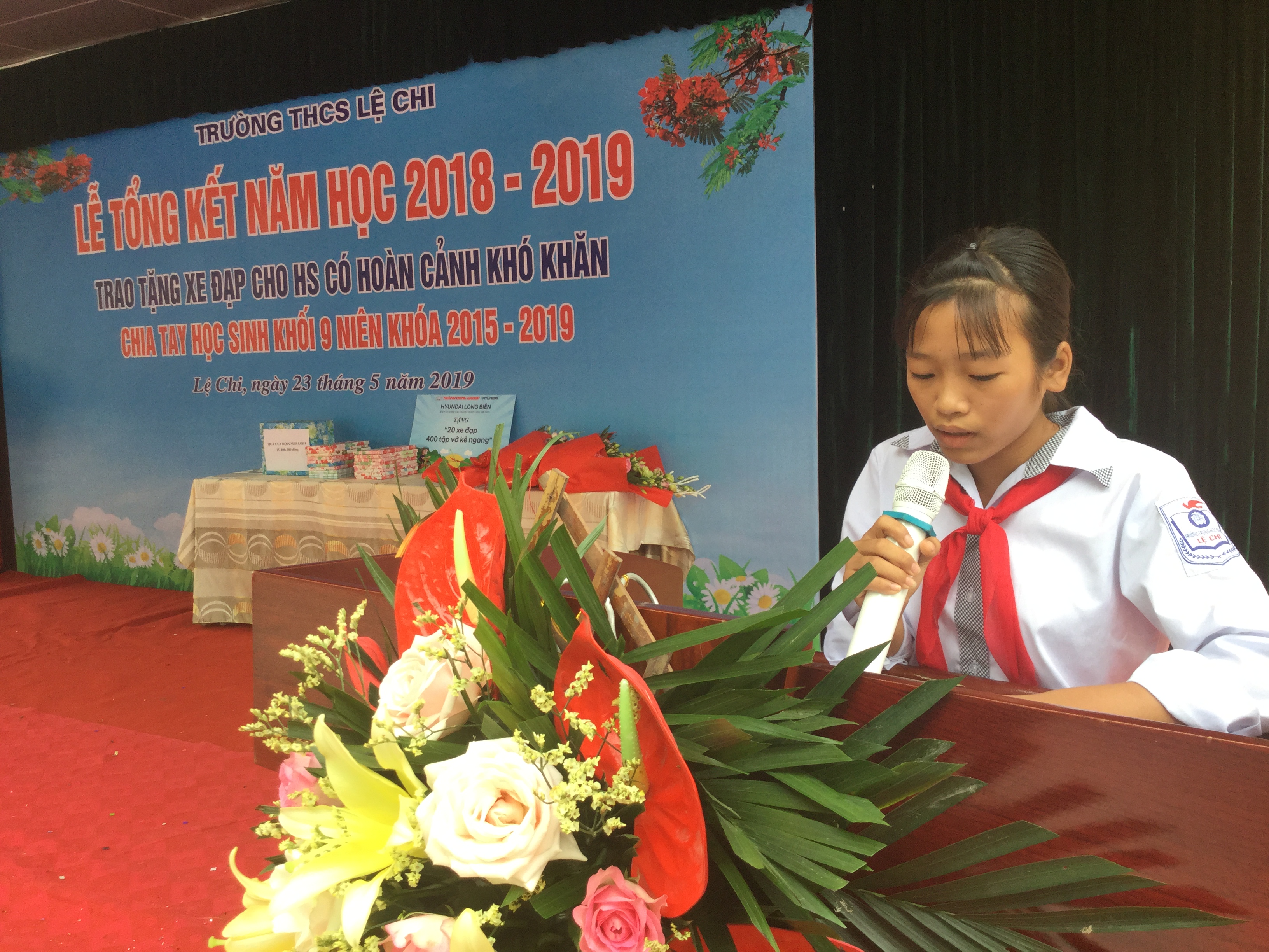 Đại diện học sinh nhận quà gửi lời cảm ơn tới Ban lãnh đạo và CBNV Đại lý Hyundai Long Biên