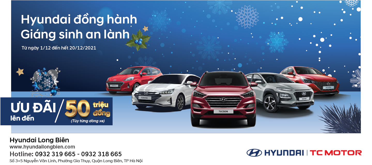 Với mong muốn đồng hành cùng người tiêu dùng cả nước kịp thời sở hữu chiếc xe phù hợp, bảo vệ sức khỏe gia đình, nhân dịp cuối năm và giáng sinh, Hyundai Long Biên chính thức triển khai chương trình “Hyundai đồng hành - Giáng sinh an lành” ưu đãi cho khách hàng đến hết ngày 20/12/2021. Theo đó, khách hàng sẽ được nhận ưu đãi giảm giá xe lên tới 50 triệu đồng tùy từng mẫu xe và các phiên bản.