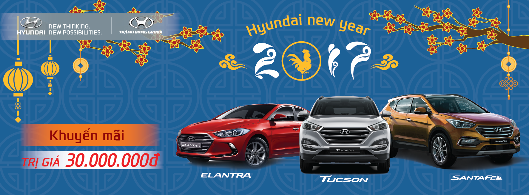 Từ ngày 01/01/2017 cho đến hết 31/01/2017, Hyundai Thành Công (HTC) thực hiện chương trình khuyến mại dành cho 3 mẫu xe Hyundai SantaFe, Tucson và Elantra với mức ưu đãi 30 triệu đồng.