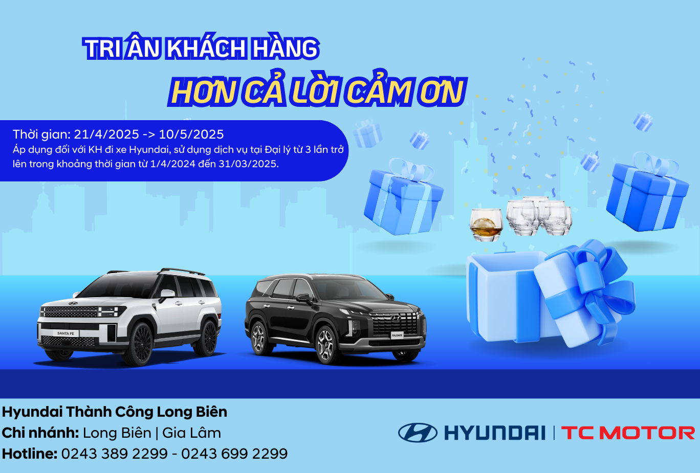 Đây là lời tri ân sâu sắc mà Hyundai Thành Công Long Biên xin được gửi đến Quý Khách Hàng – những người đã luôn tin tưởng, đồng hành và ủng hộ chúng tôi trong suốt chặng đường phát triển vừa qua.