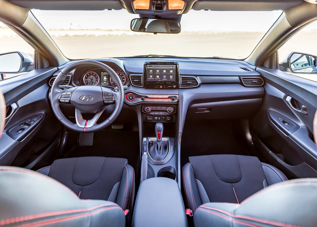 Không gian nội thất trên Veloster 2019 có nhiều sự thay đổi tạo hình hài hòa hơn, cùng nhiều trang bị công nghệ. Ở trung tâm, là màn hình cảm ứng 7 inch tiêu chuẩn hoặc tùy chọn 8 inch, hỗ trợ công nghệ Apple CarPlay và Android Auto. Với bản Turbo, màn hình còn hiển thị chế độ Performance hiển thị tình trạng xe và đồng hồ tốc độ.