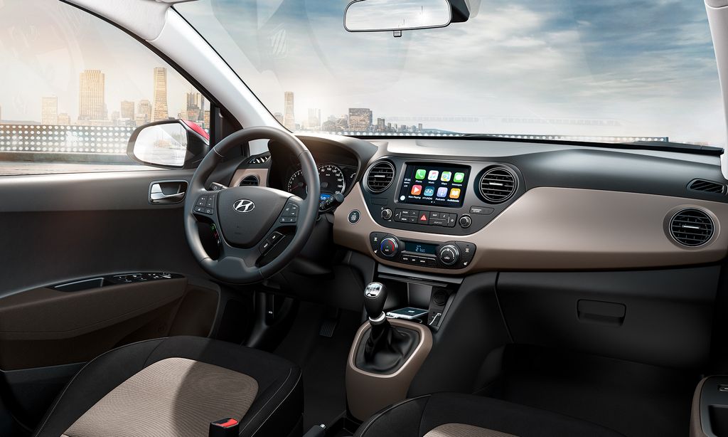 Bên trong xe, Hyundai Xcent facelift 2017 sẽ có nệm bọc ghế mới và có hệ thống thông tin giải trí màn hình cảm ứng với các tích hợp MirrorLink, Android Auto và Apple CarPlay. Hơn nữa, Xcent còn có hệ thống cảm biến nhiệt độ tự động.
