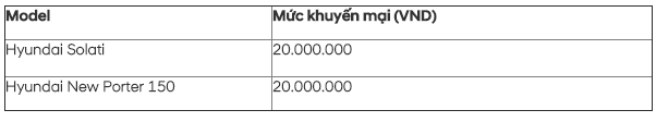 Từ ngày 01/08 đến hết 31/08/2018, Hyundai Long Biên chính thức thực hiện chương trình khuyến mại với 2 mẫu xe thương mại New Porter 150 và Solati với giá trị lên đến 20 triệu đồng.