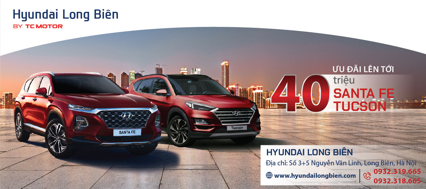 Từ ngày 01/09/2020 cho đến hết 20/09/2020, Hyundai Logn Biên by TC MOTOR thực hiện chương trình khuyến mại dành cho mẫu xe Hyundai SantaFe CKD và Hyundai Tucson CKD với mức ưu đãi 40 triệu đồng khi mua xe.