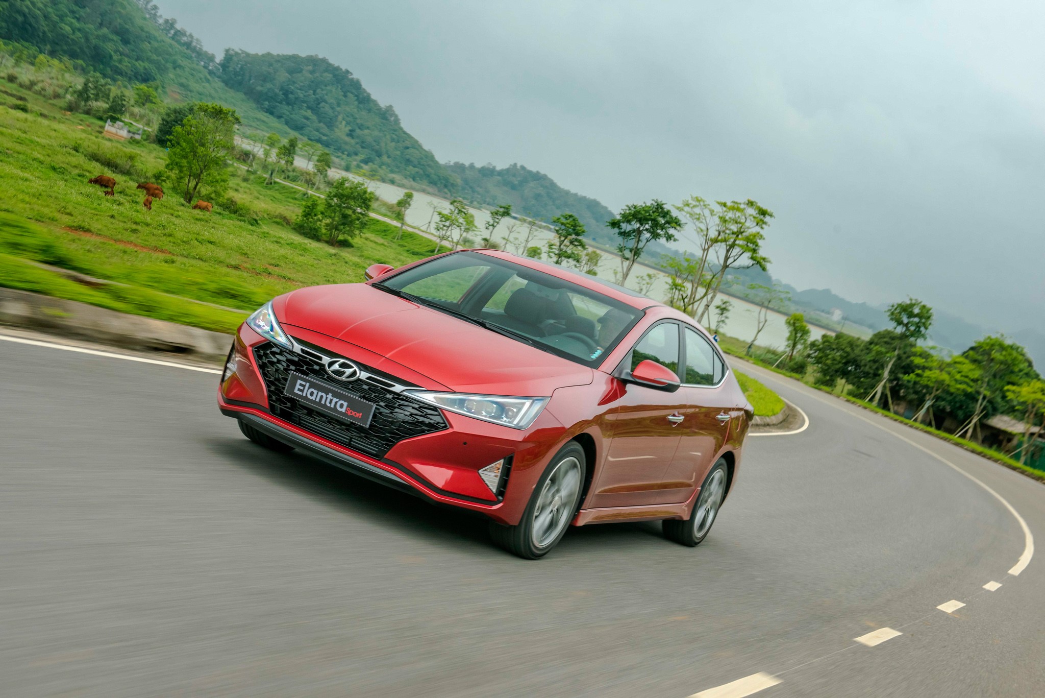 Hyundai Elantra là mẫu sedan hạng C được TC MOTOR giới thiệu phiên bản nâng cấp vào tháng 5/2019. Elantra 2019 nổi bật với ngoại hình được thiết kế theo ngôn ngữ mới “Sensual Sportiness”, đậm chất thể thao và cá tính hơn. Lưới tản nhiệt to bản dạng thác nước “Cascading Grill” đặc trưng của Hyundai nối liền cụm đèn pha hai bên tạo cảm giác liền mạch, cân xứng. Elantra được trang bị cụm đèn pha LED với 4 Projector chứa nhiều bóng LED nhỏ bên trong, tạo nên sự hiện đại, đẳng cấp cũng như hiệu quả chiếu sáng tốt hơn. Xe được trang bị động cơ Nu 2.0L hoặc Gamma II 1.6L, hộp số tự động 6 cấp hoặc số sàn, đi cùng đi kèm hệ thống an toàn 6 túi khí cùng những công nghệ an toàn cao cấp như ABS, ESC, BA, VSM, HAC,...Phiên bản Sport nổi bật với sức mạnh từ động cơ 1.6L T-GDI đi kèm hộp số ly hợp kép 7 cấp, cho công suất tối đa 204 mã lực cùng Momen xoắn cực đại 265Nm.