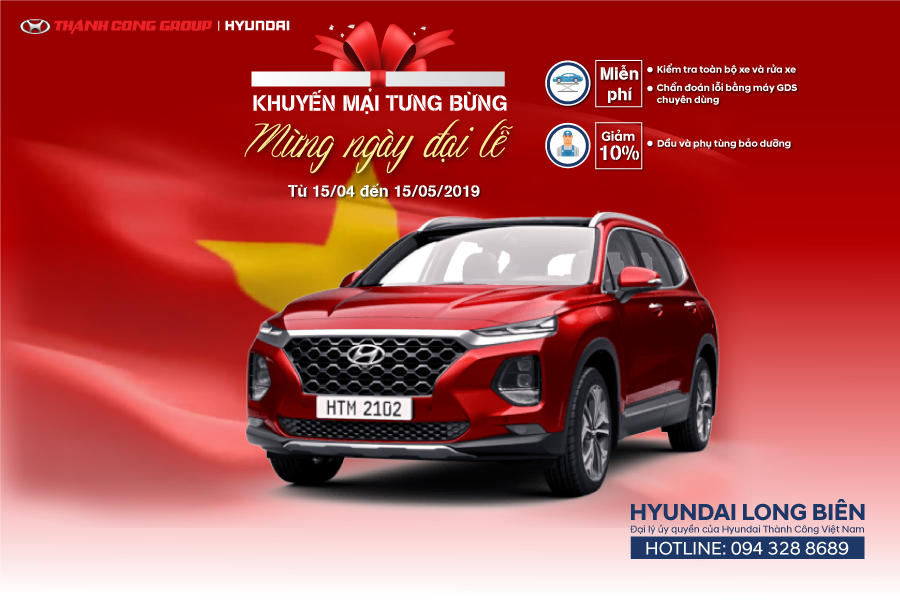 Nhân dịp ngày 30/4 - Giải phóng miền Nam, thống nhất đất nước và ngày 1/5 - Ngày Quốc tế lao động, với mong muốn tri ân khách hàng đã, đang, và luôn đồng hành cùng Hyundai Long Biên, chúng tôi xin gửi tới chương trình với tên gọi "Khuyến mại tưng bừng - Mừng ngày Đại lễ".