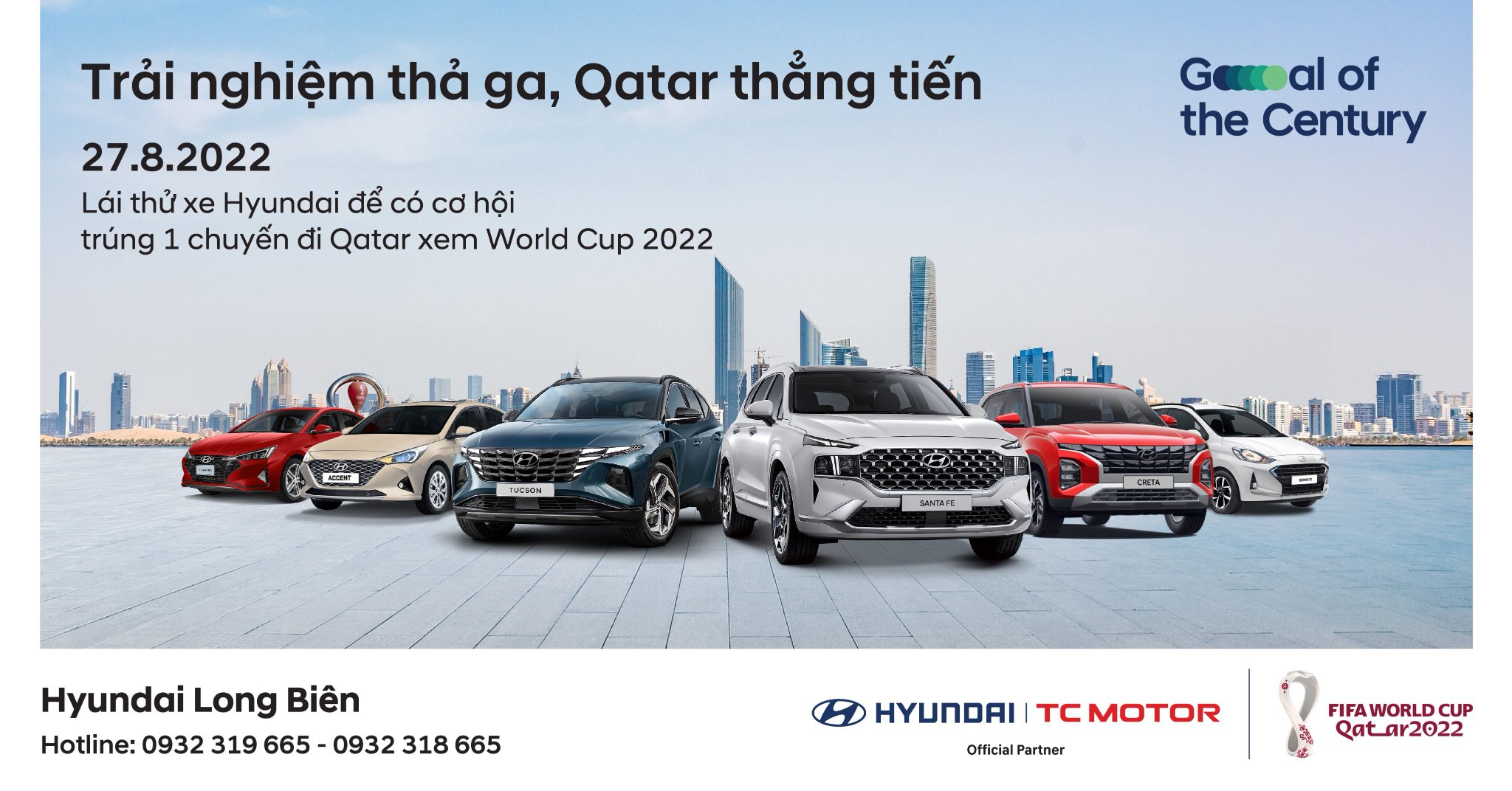 Hãy đến tham dự Chương trình Lái thử Hyundai của Hyundai Long Biên để trở thành người may mắn nhất sở hữu 1 chuyến đi Qatar xem World Cup 2022 vào thứ 7 tuần này.