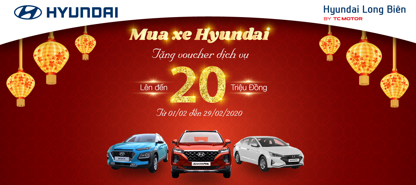 Từ ngày 01/02/2020 cho đến hết 29/02/2020, Hyundai Long Biên by TC MOTOR thực hiện chương trình khuyến mại "MUA XE HYUNDAI - TẶNG VOUCHER DỊCH VỤ" với mức ưu đãi lên đến 20 triệu đồng.