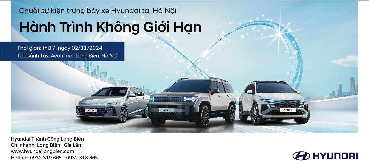 Đừng bỏ lỡ sự kiện Trưng bày xe Hyundai vào cuối tuần này tại Aeon Mall Long Biên để thỏa sức trải nghiệm các dòng xe cùng nhiều phần quà hấp dẫn và các hoạt động: