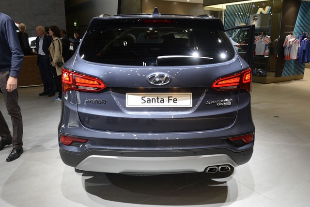 Trong triển lãm Frankfurt 2015 vừa qua, Hyundai Santa Fe phiên bản mới nhất đã chính thức trình làng. ước sang phiên bản 2016, Hyundai Santa Fe được nâng cấp ngoại thất với cản va trước cải tiến, đèn sương mù, dải đèn LED chiếu sáng ban ngày, lưới tản nhiệt có thiết kế đậm chất 3 chiều hơn đi kèm thanh ngang mạ crôm sáng bóng. Bên cạnh đó là hốc đèn pha mới, cản va sau khác biệt, ống xả hình chữ nhật thay vì oval như trước và đèn hậu nâng cấp.