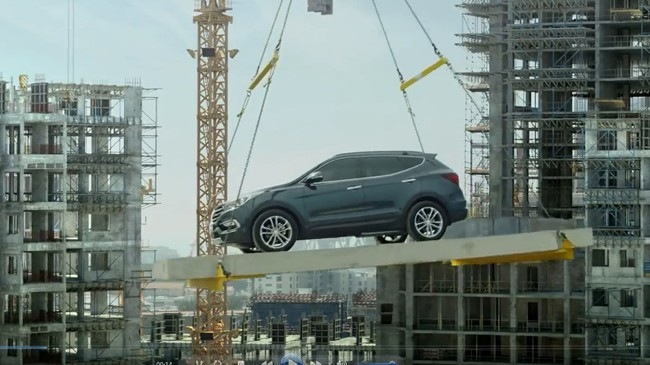 Đoạn quảng cáo dành cho Hyundai Santa Fe 2016 được quay tại một công trường đã gây ấn tượng cho không ít cư dân mạng.