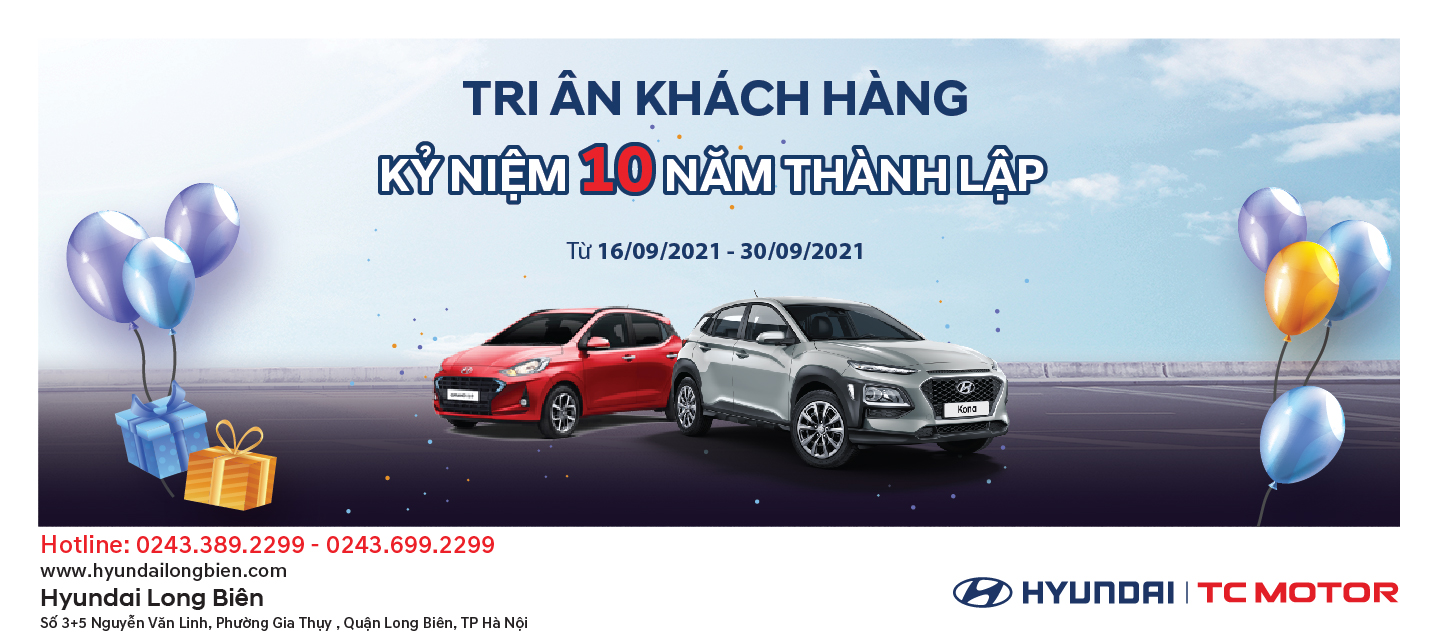 Nhằm tri ân những khách hàng đã và đang tin tưởng, sử dụng các sản phẩm, dịch vụ chính hãng của Hyundai. Hyundai Long Biên xin gửi tới Quý khách hàng chương trình “TRI ÂN KHÁCH HÀNG KỶ NIỆM 10 NĂM THÀNH LẬP”
