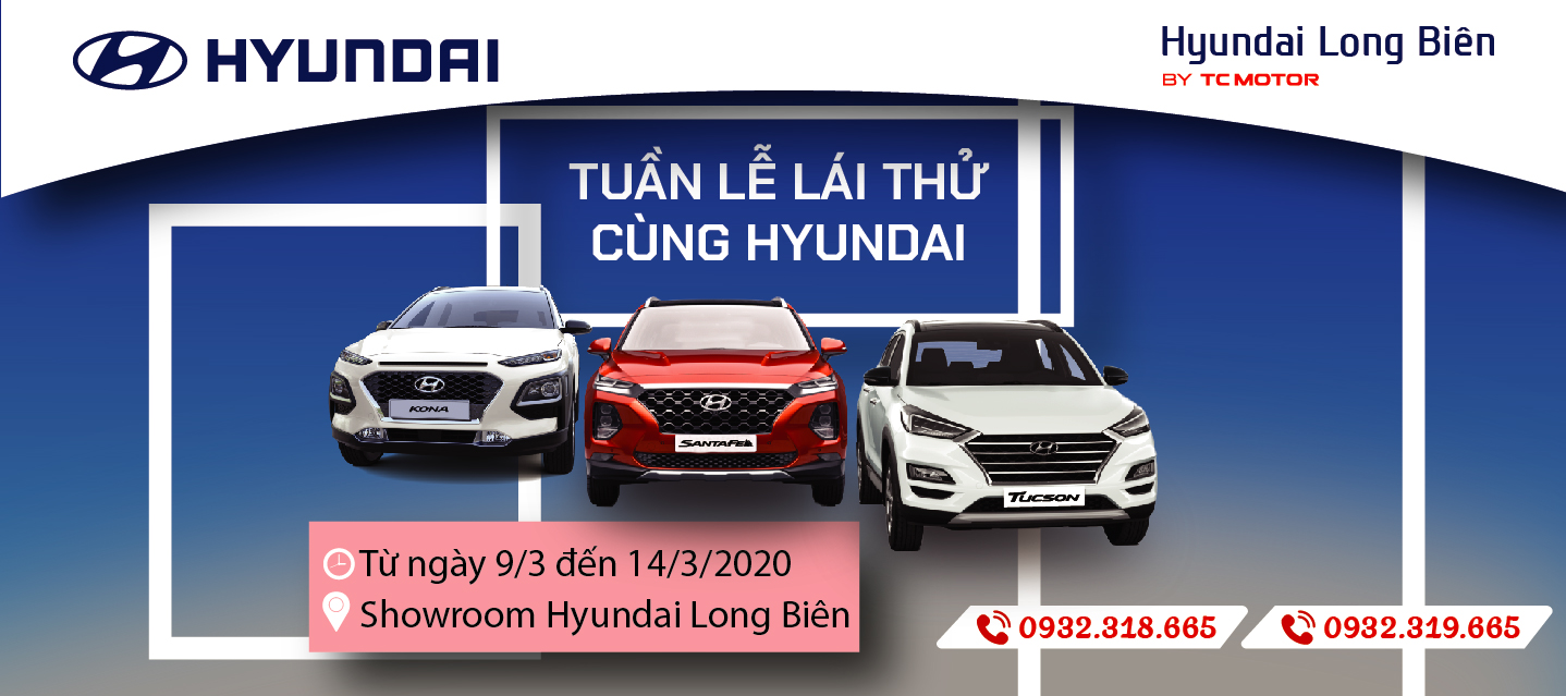 Hyundai Long Biên by TC MOTOR xin gửi tới Quý khách hàng chương trình tuần lễ lái thử các dòng xe mới nhất của Hyundai với nhiều những ưu đãi hấp dẫn khi mua xe.