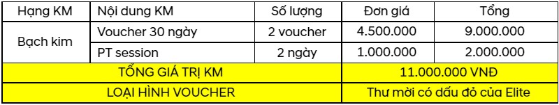 ► Tặng ngay ưu đãi gói tập bạch kim trị giá 11 triệu đồng tại Elite Hà Nội