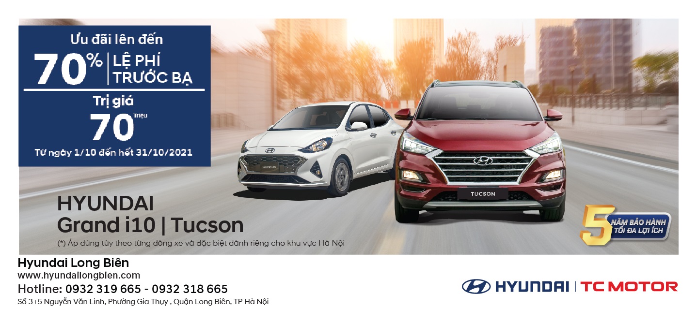 Nhằm tri ân những khách hàng đã và đang tin tưởng, sử dụng các sản phẩm, dịch vụ chính hãng của Hyundai. Hyundai Long Biên xin gửi tới Quý khách hàng chương trình “Ưu đãi đến 70% phí trước bạ hoặc khuyến mại lên tới 70 triệu đồng” trong tháng 10.